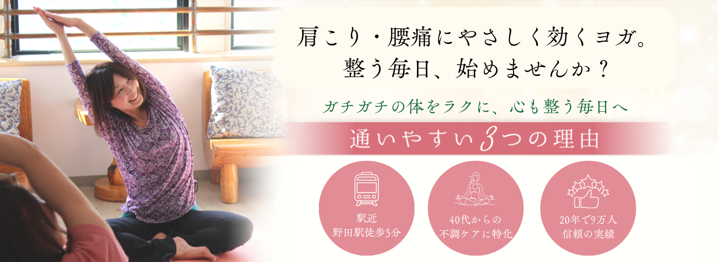 肩こりや腰痛のケアには「肩こり解消ヨガ」や「骨盤調整ヨガ」