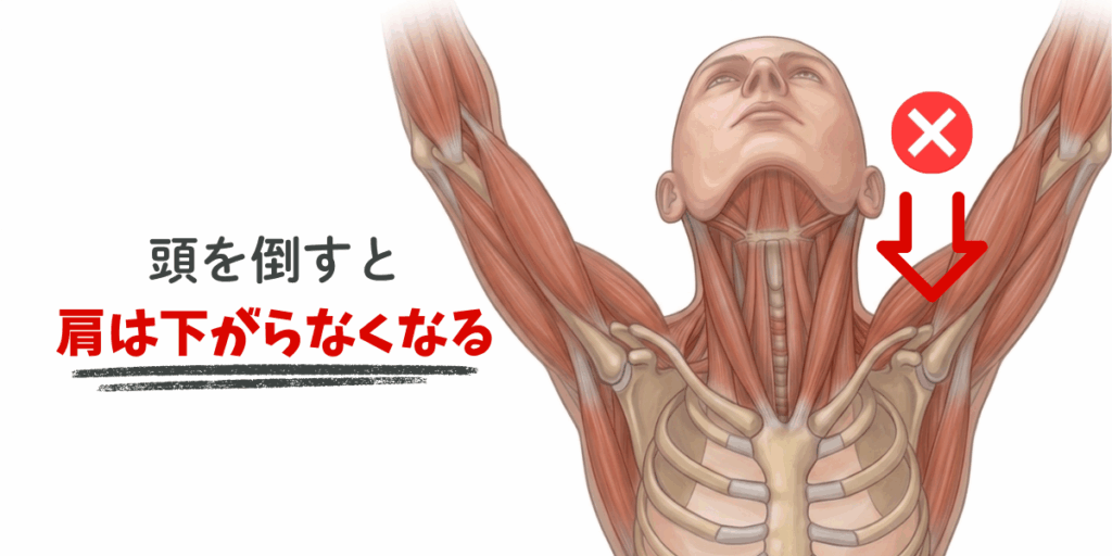 つまり、頭を後ろに倒したまま肩を下げることは、体の仕組みとしてほぼ不可能なのです。