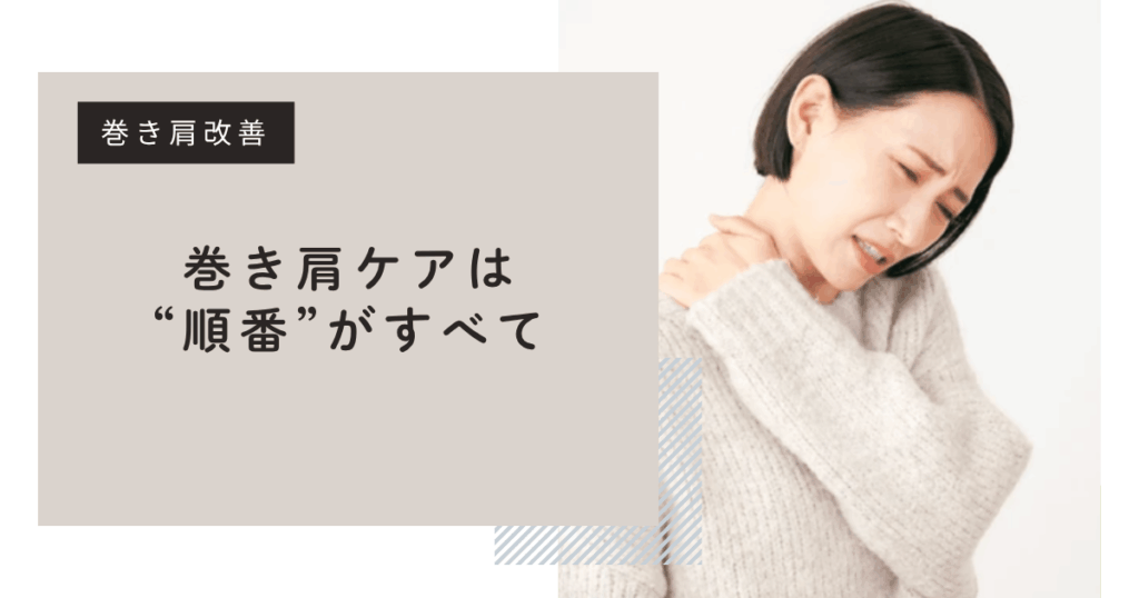 この記事では、そんな巻き肩を悪化させないために知っておきたい正しい理解とケアの順番を、わかりやすく解説します。