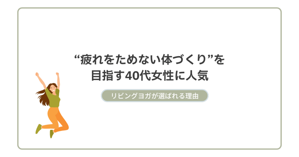 体の仕組みに基づいた丁寧なレッスンで、40代女性の「疲れ」「だるさ」「眠りの浅さ」といった悩みに寄り添っています。