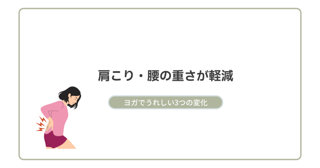 ヨガでは、肩甲骨や背骨、骨盤まわりをやさしく動かし、筋肉のこわばりをほぐして血流を促すことで、自然に軽さを取り戻します。