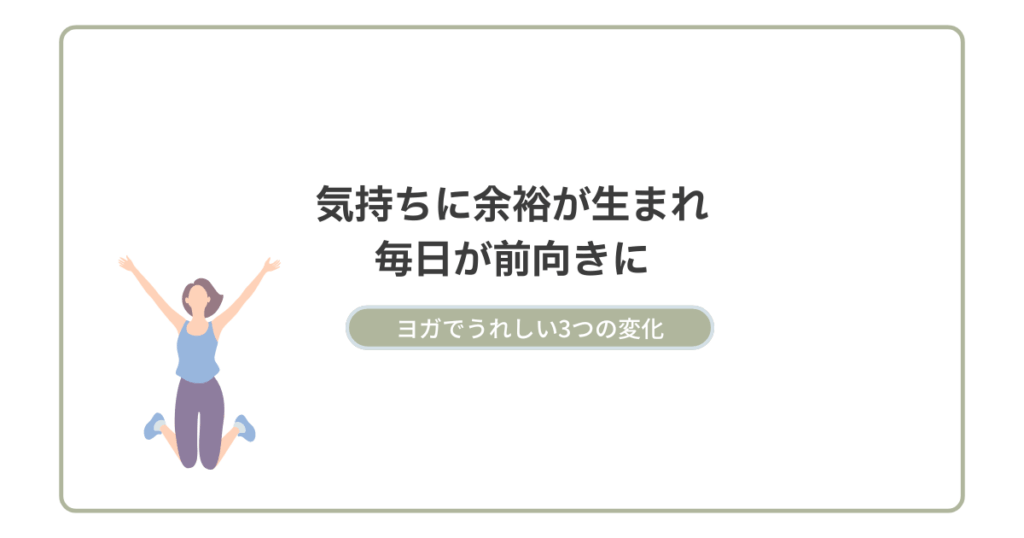 ヨガを続けていくと、体の変化だけでなく、気持ちにも穏やかな変化が生まれていきます。